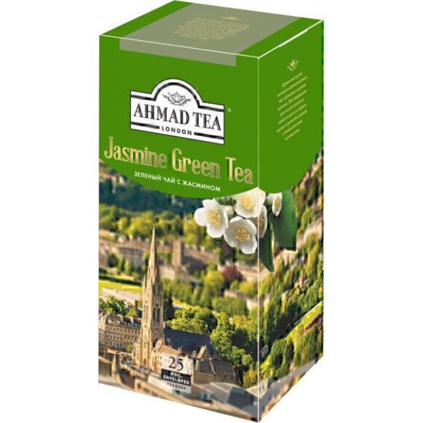 Чай зеленый байховый листовой мелкий Jasmine Green Tea (Зеленый чай с жасмином) в пакетиках с ярлычками в индивидуальных конвертах.