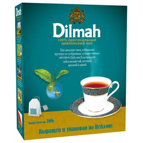 Чай черный цейлонский торговой марки "Dilmah" (Дилма) в пакетиках для разовой заварки. Чай выращивается, собирается вручную