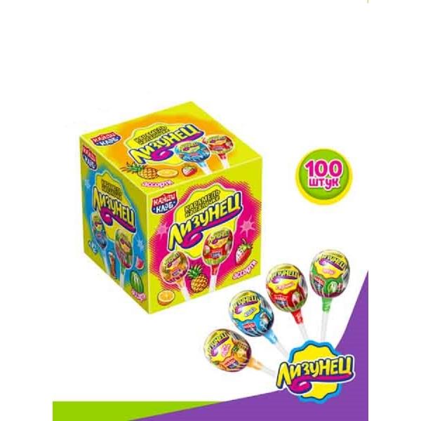 Карамель Канди Клаб 10гр*100*(12бл) Лизунец на палочке ассорти