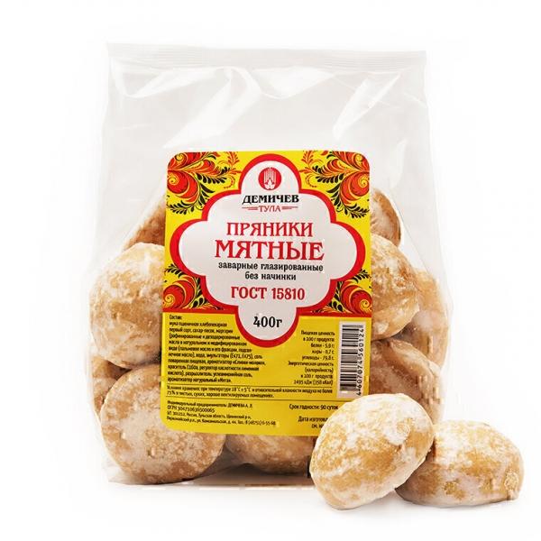 Пряники заварные глазированные без начинки Мятные из пшеничной муки первого сорта с ароматом мяты. Пряники оставляют приятное