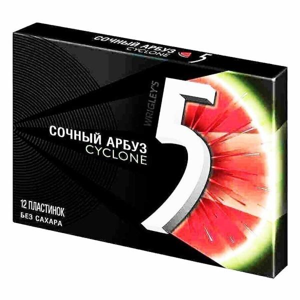 Жевательная резинка 5 "Файв Cyclone" без сахара со вкусом арбуза - вкус сочный арбуз.