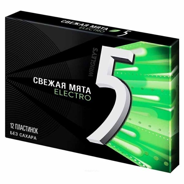 Жевательная резинка 5 "Файв Electro" без сахара с ароматом мяты.