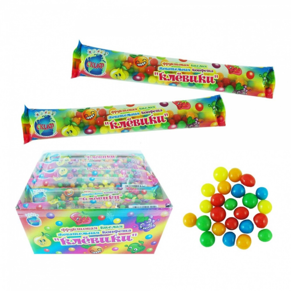 Сахарное драже с хрустящей начинкой "Бомбические Кислики" с ароматом клубники, апельсина, яблока, винограда, лимона.