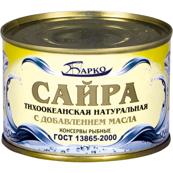 Сайра тихоокеанская натуральная с добавлением масла 'Барко ' ГОСТ 250г*48шт.
