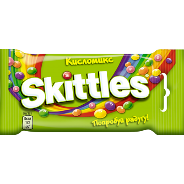 Драже Skittles в сахарной глазури со вкусами малины, ананаса, мандарина, вишни и яблока - Кисломикс.