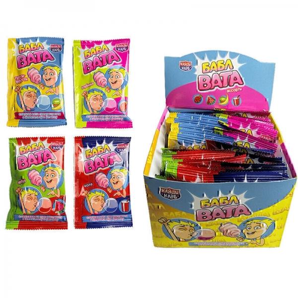 Жевательная резинка "Бабл Вата" в виде сладкой ваты со вкусами арбуза, клубники, колы, тутти-фрутти.