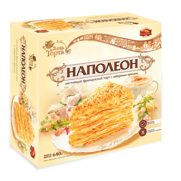Золотистый слоеный «Наполеон» с заварным кремом - настоящая классика. Этот торт приготовлен по фирменному рецепту, благодаря которому