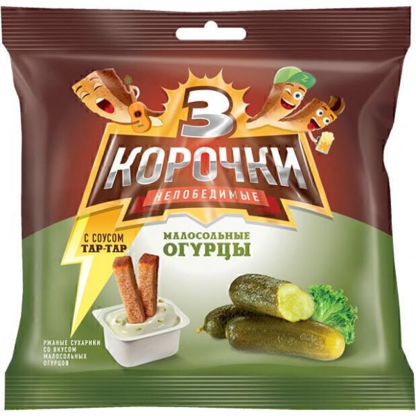 Три Корочки Ржаные+ СОУС 60г+25г*30 "Малос.огурцы соус Тартар" Три Корочки Ржаные+ СОУС 60г+25г*30