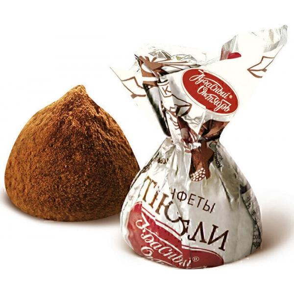 Знаменитые конфеты "Трюфели" от фабрики «Красный Октябрь». В классическом серебристом фантике прячется темный купол застывшего