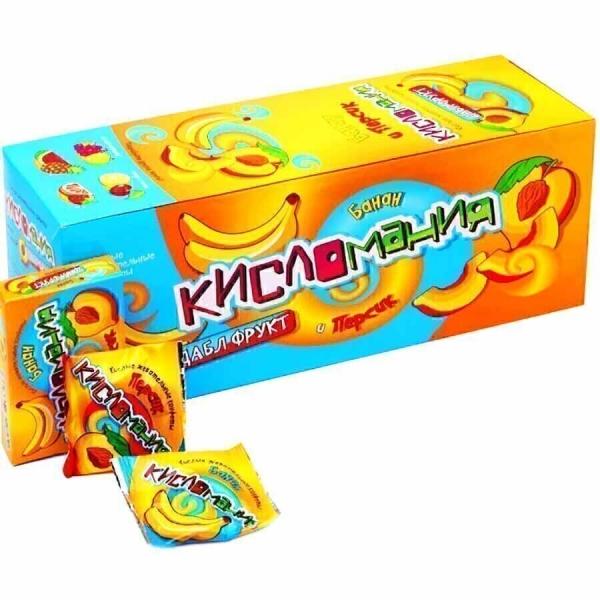 Жевательная конфета Канди Клаб 14гр*30*(12бл) Кисломания Дабл фрукт Банан и персик