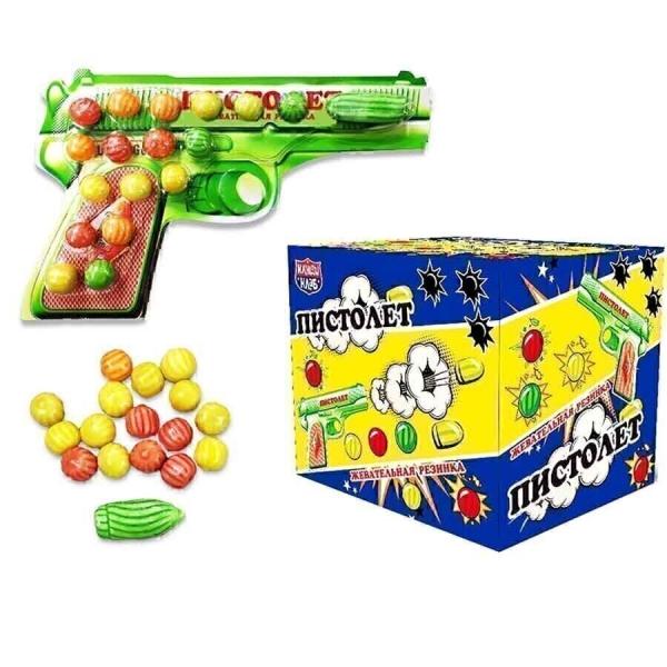 Вкуснейшие жевательные резинки со вкусом клубники, апельсина, лимона, яблока в форме пулек внутри пистолета!