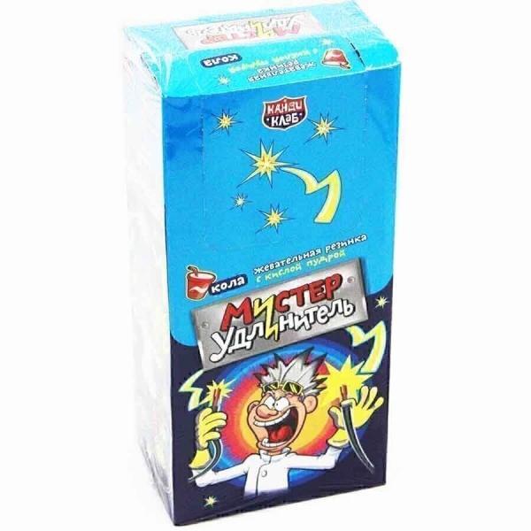 Жевательная резинка с кислой пудрой "Мистер удлинитель" со вкусами арбуза или колы (в зависимости от вида).