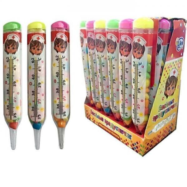 Жевательная резинка Вкусный градусник - отличное лакомство в виде градусника. Полный разноцветными драже градусник порадует любого